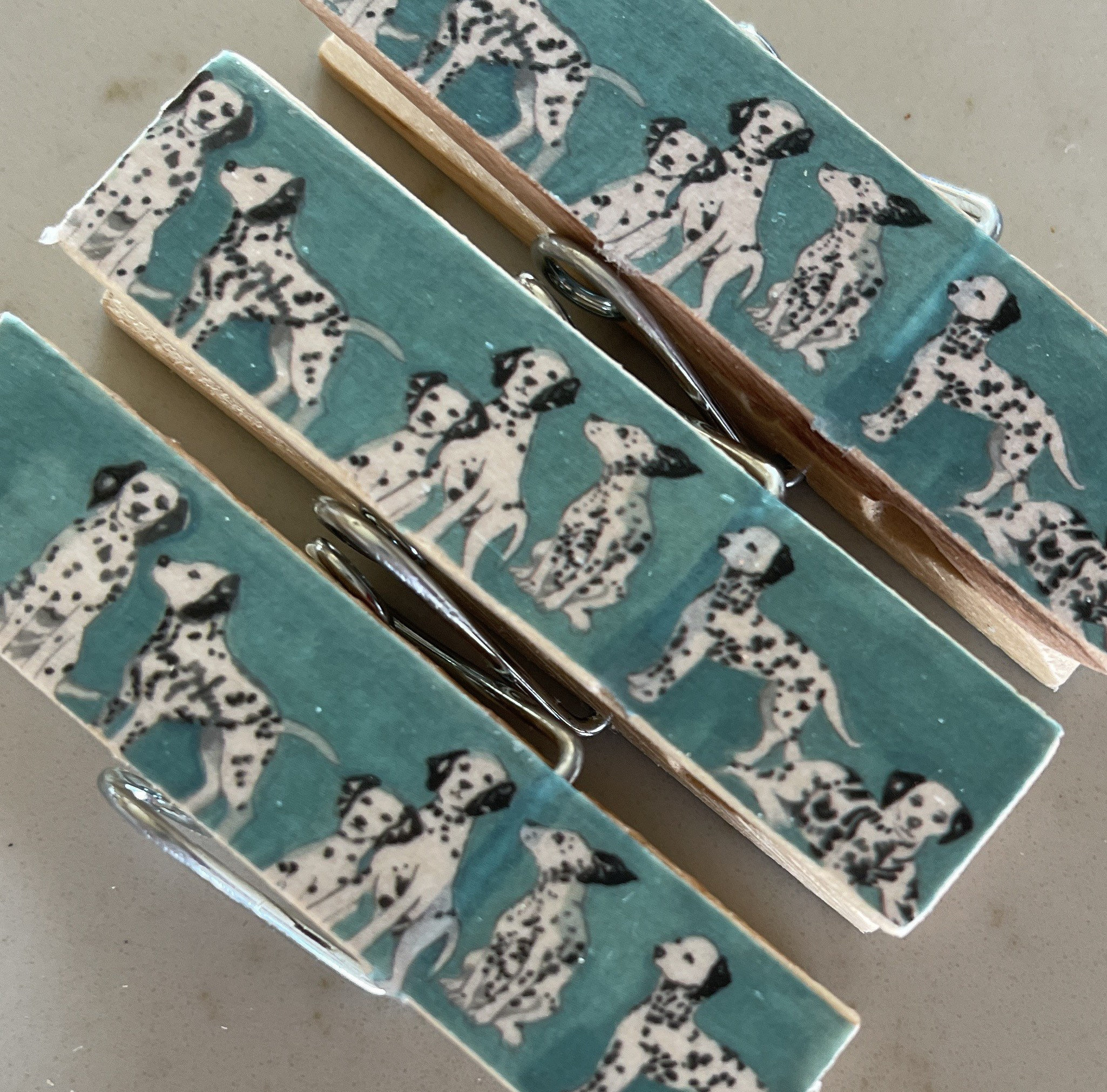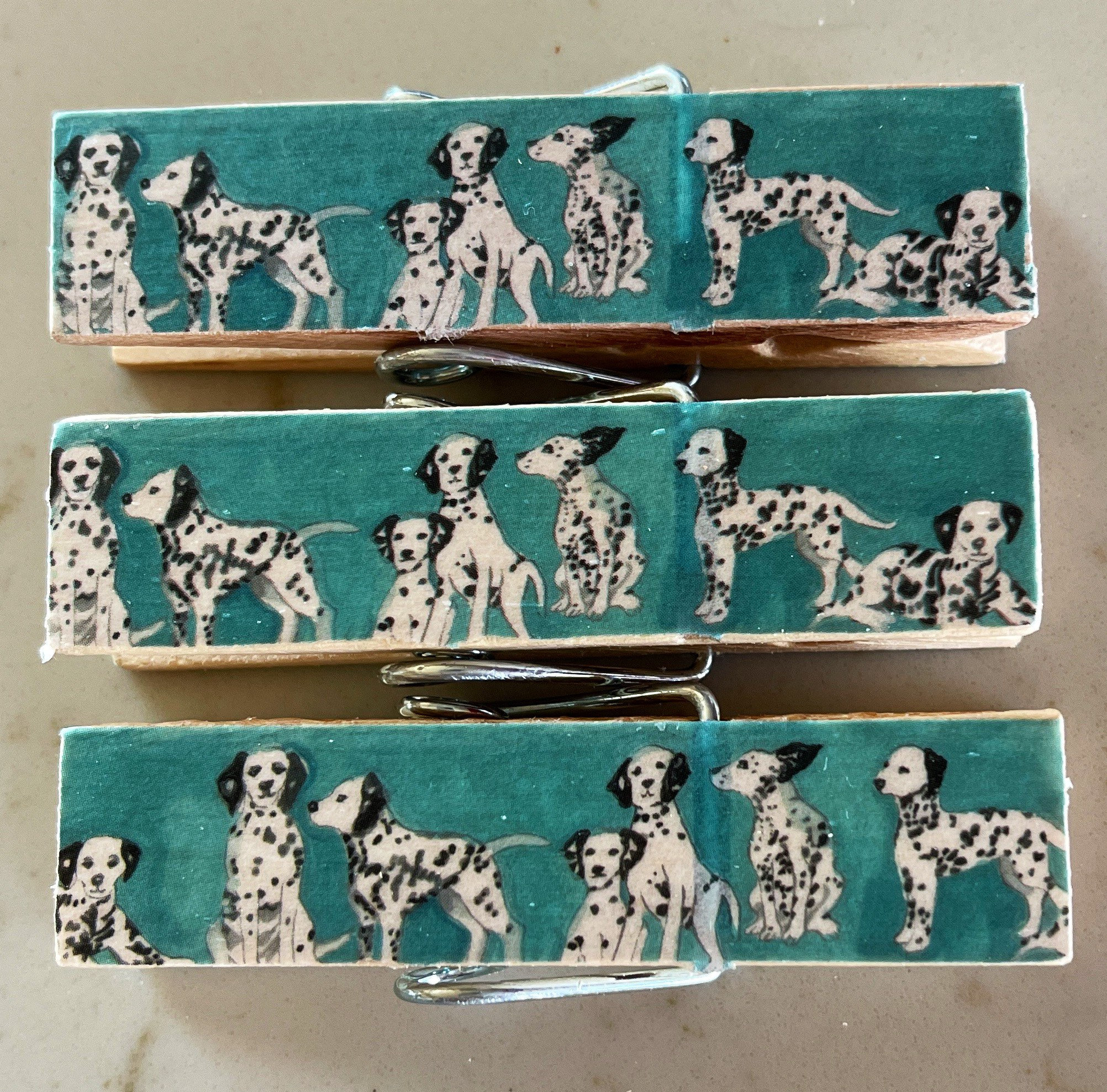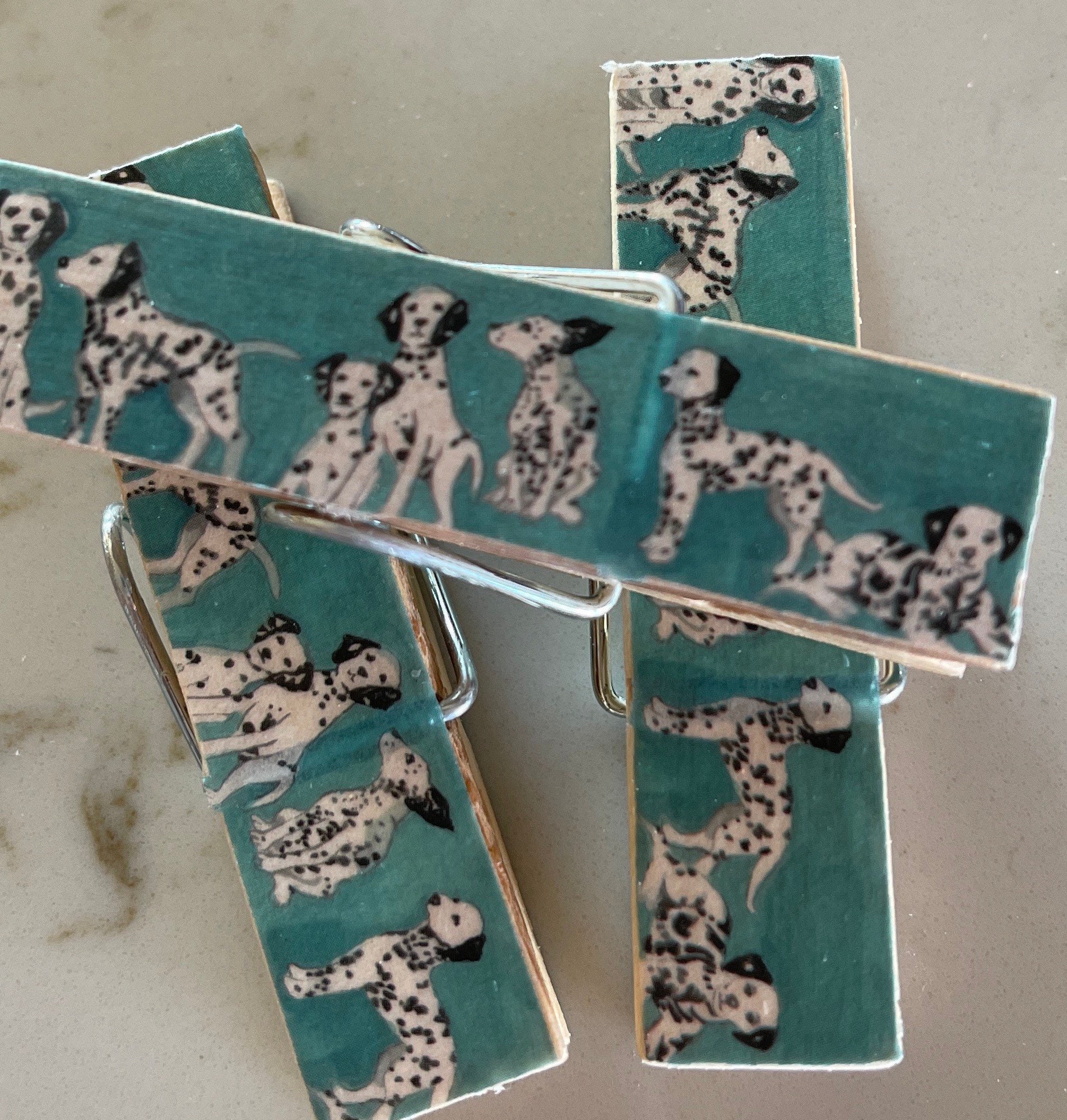 Each clip is crafted using paper, decorative tape, or napkins. Unless otherwise noted, the design is featured on both sides. They're sealed with multiple coats of protective finish for durability and easy wipe-clean care.