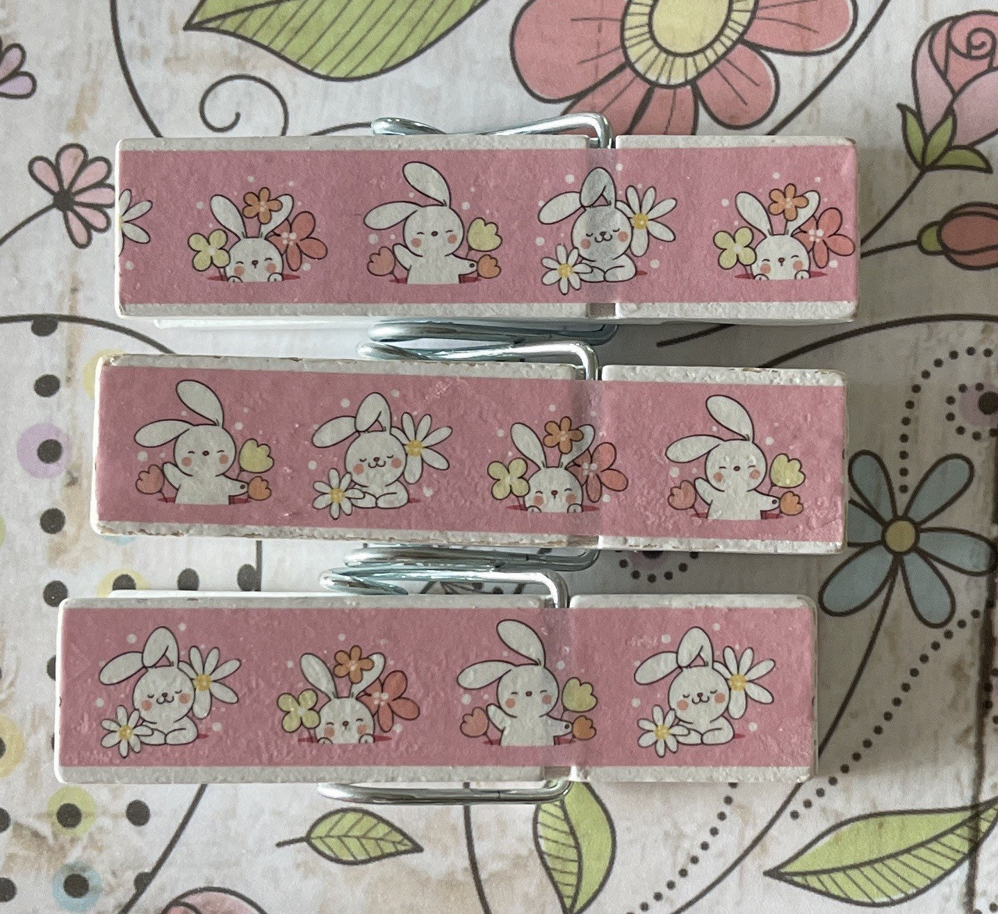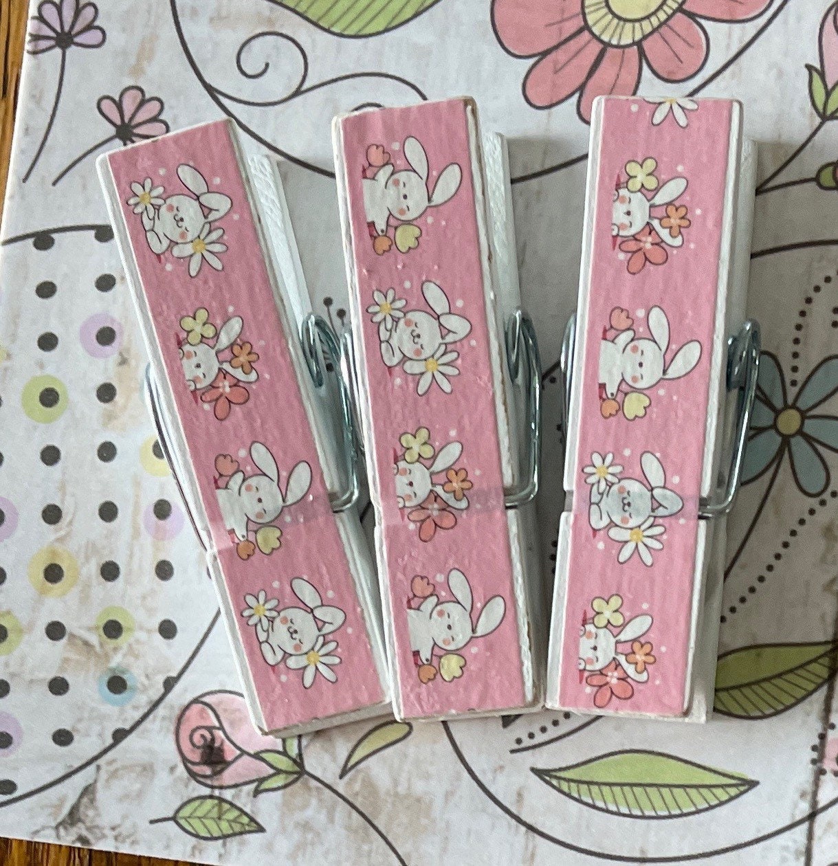 Easter and bunnies are the theme for the set of these clips. The pattern is on both sides of the clips. Magnets can be added to the clips - just select that option at checkout.