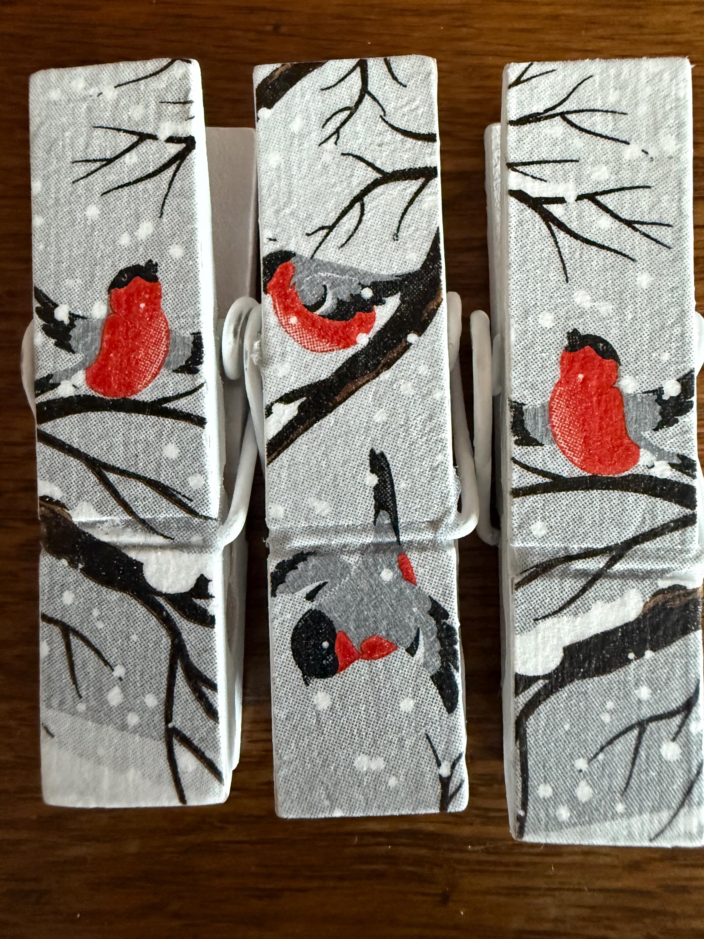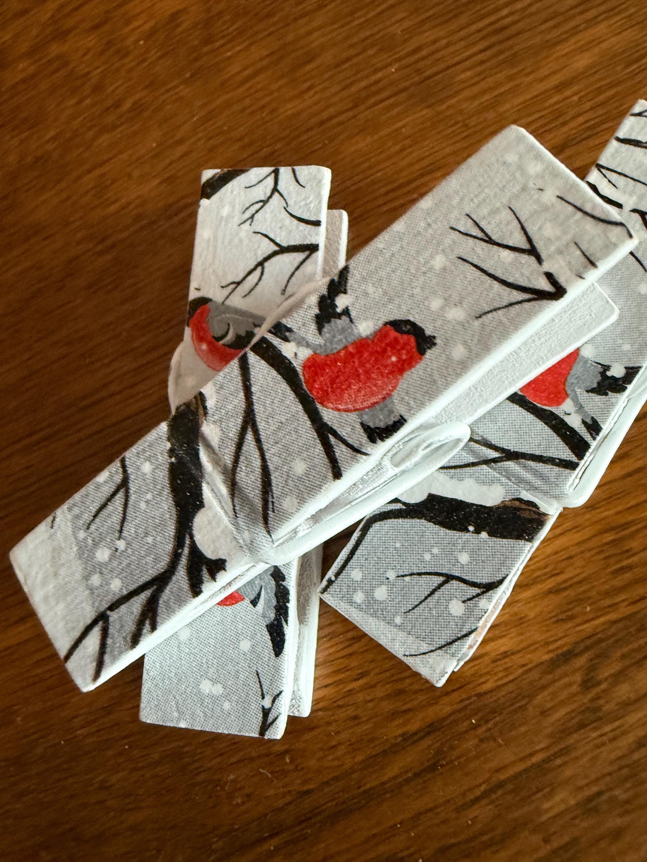Each clip is crafted using paper, decorative tape, or napkins. Unless otherwise noted, the design is featured on both sides. They're sealed with multiple coats of protective finish for durability and easy wipe-clean care.