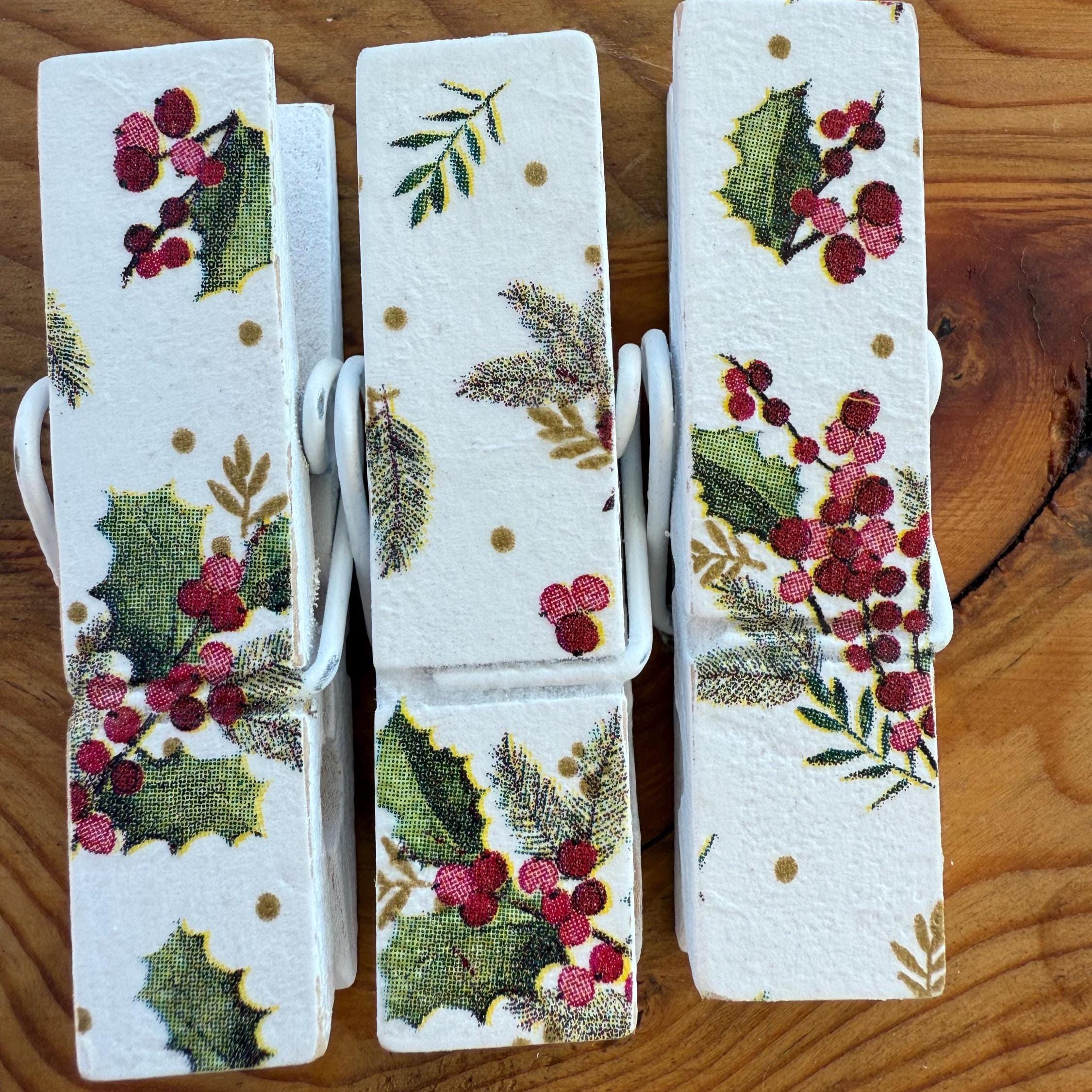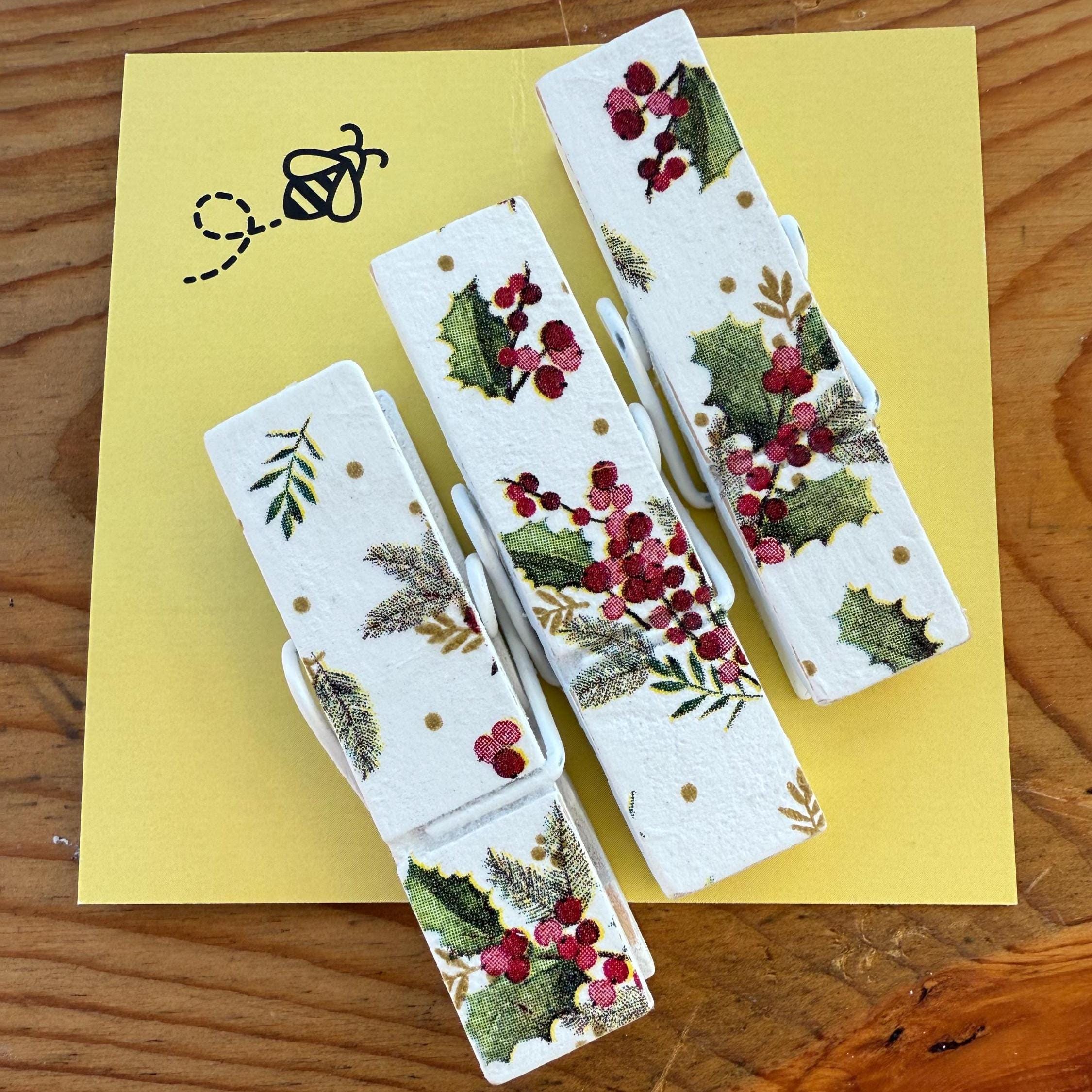 Each clip is crafted using paper, decorative tape, or napkins. Unless otherwise noted, the design is featured on both sides. They're sealed with multiple coats of protective finish for durability and easy wipe-clean care.
