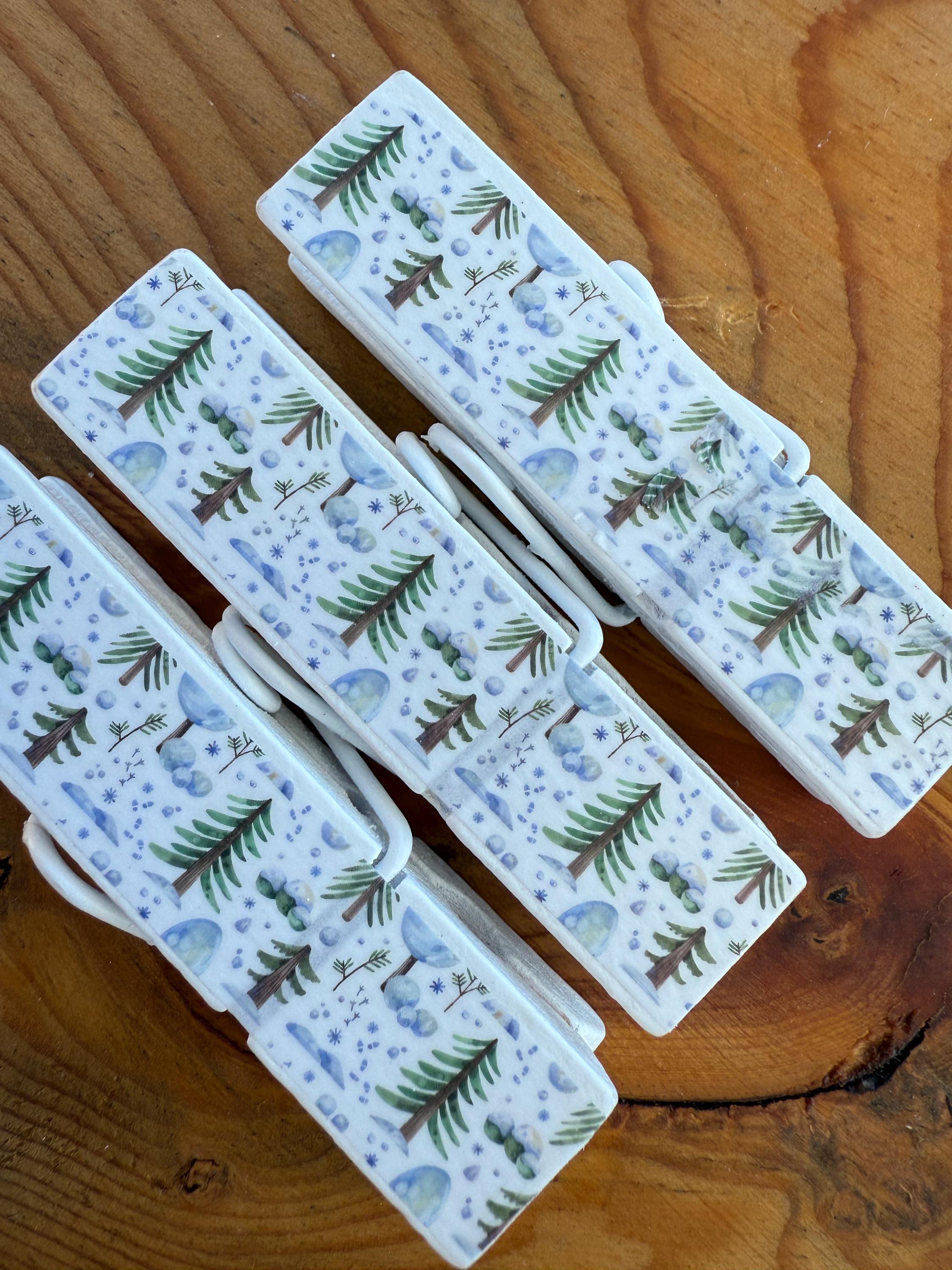Evergreen Christmas Trees in Snowy Forest Christmas Holiday Chip Clip Stocking Stuffer