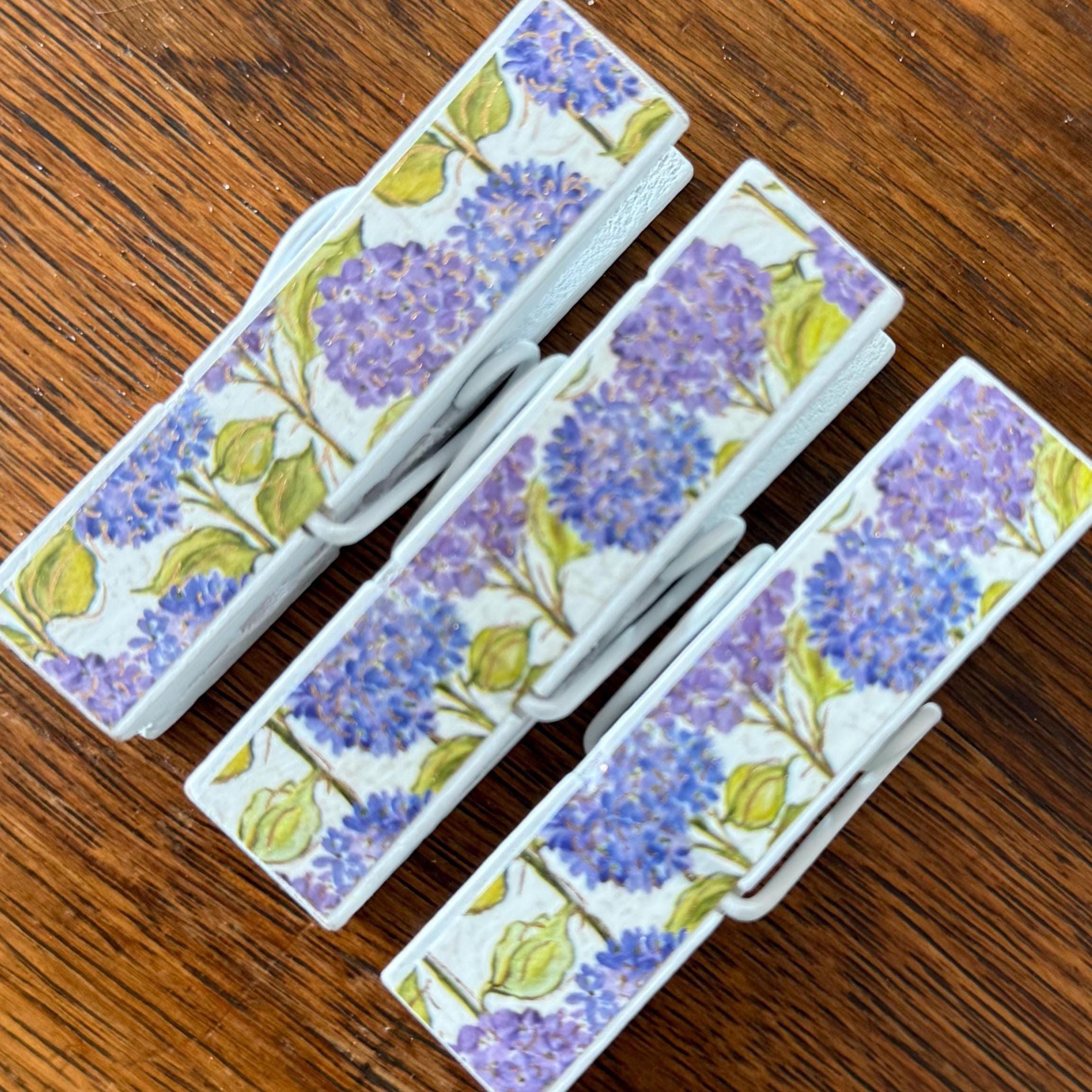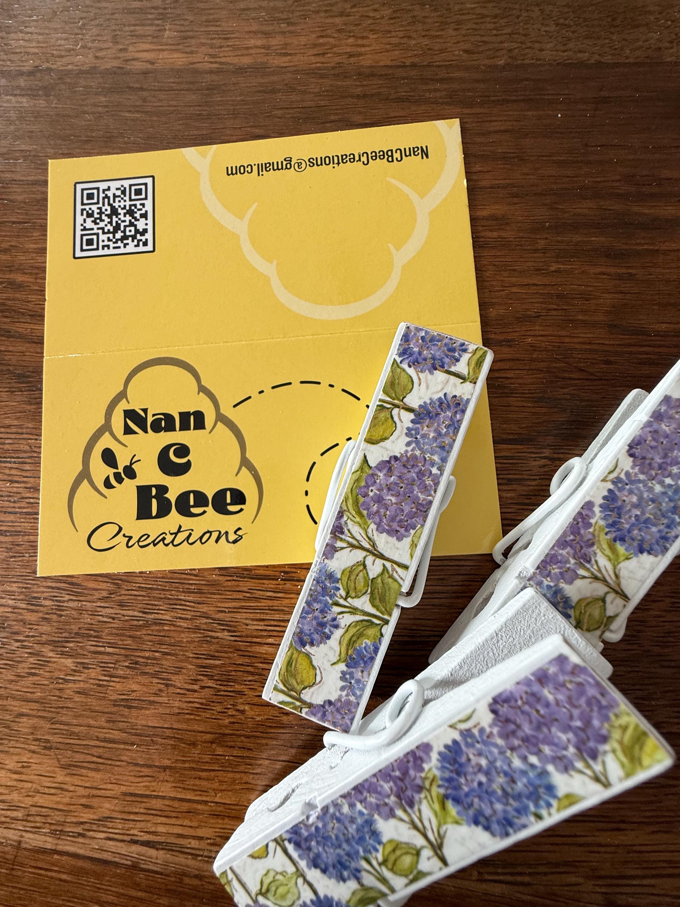 Each clip is crafted using paper, decorative tape, or napkins. Unless otherwise noted, the design is featured on both sides. They're sealed with multiple coats of protective finish for durability and easy wipe-clean care.