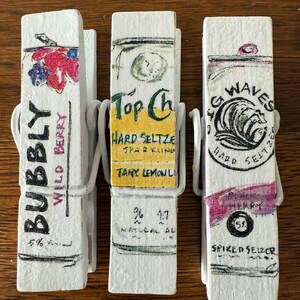 Each clip is crafted using paper, decorative tape, or napkins. Unless otherwise noted, the design is featured on both sides. They're sealed with multiple coats of protective finish for durability and easy wipe-clean care.